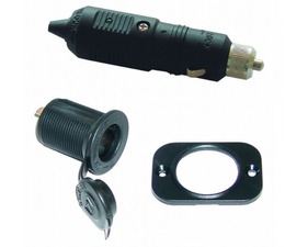 Kit fiche et prise de pont allume-cigare entièrement étanche, aussi bien lorsque le capuchon de protection est refermé que lorsque la fiche est branchée, car elle est équipée d'un collier étanche spécial et d'un système « lock-in » qui permet de bloquer la fiche en la faisant pivoter.