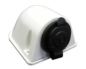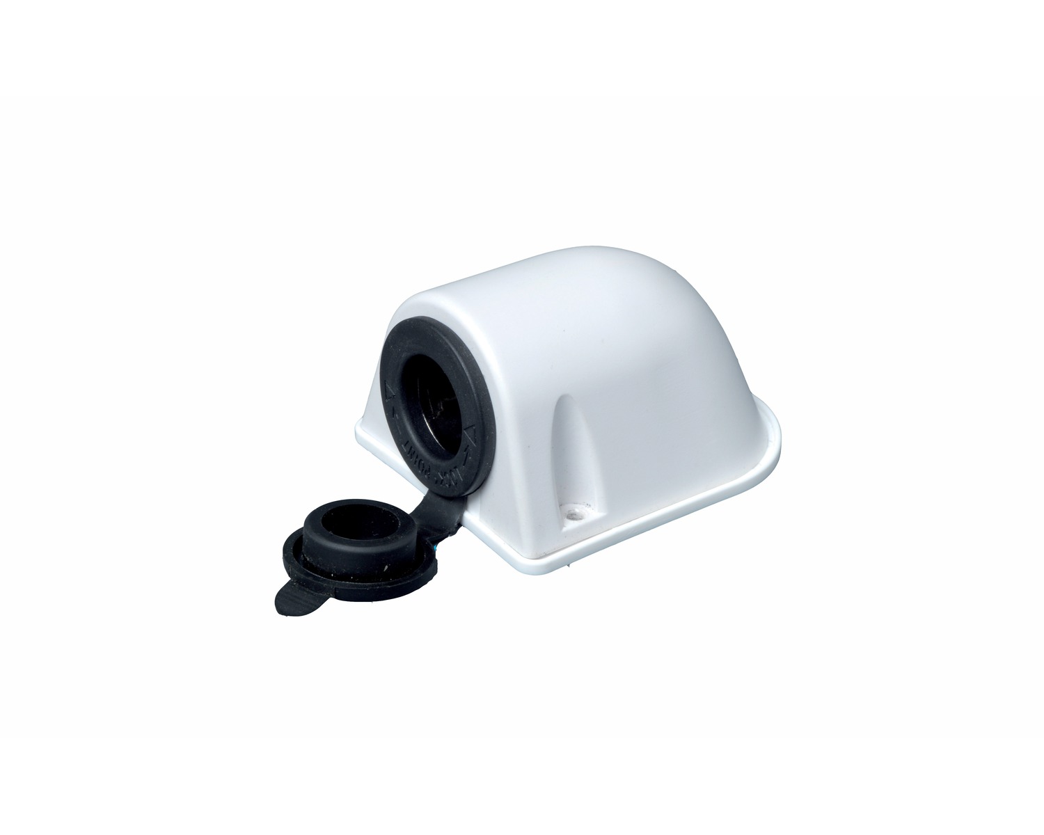 Prise de pont allume-cigare entièrement étanche, aussi bien lorsque le capuchon de protection est refermé que lorsque la fiche est branchée, car elle est équipée d'un collier étanche spécial et d'un système « lock-in » qui permet de bloquer la fiche en la faisant pivoter.