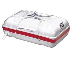 Conçu pour des conditions de navigation modérées : gonflement à 0°C, simple fond, toile de tente orange fluo avec arceau en fibre de verre à déployer manuellement, lampe extérieure 0.75 cd, bandes rétro-réfléchissantes.