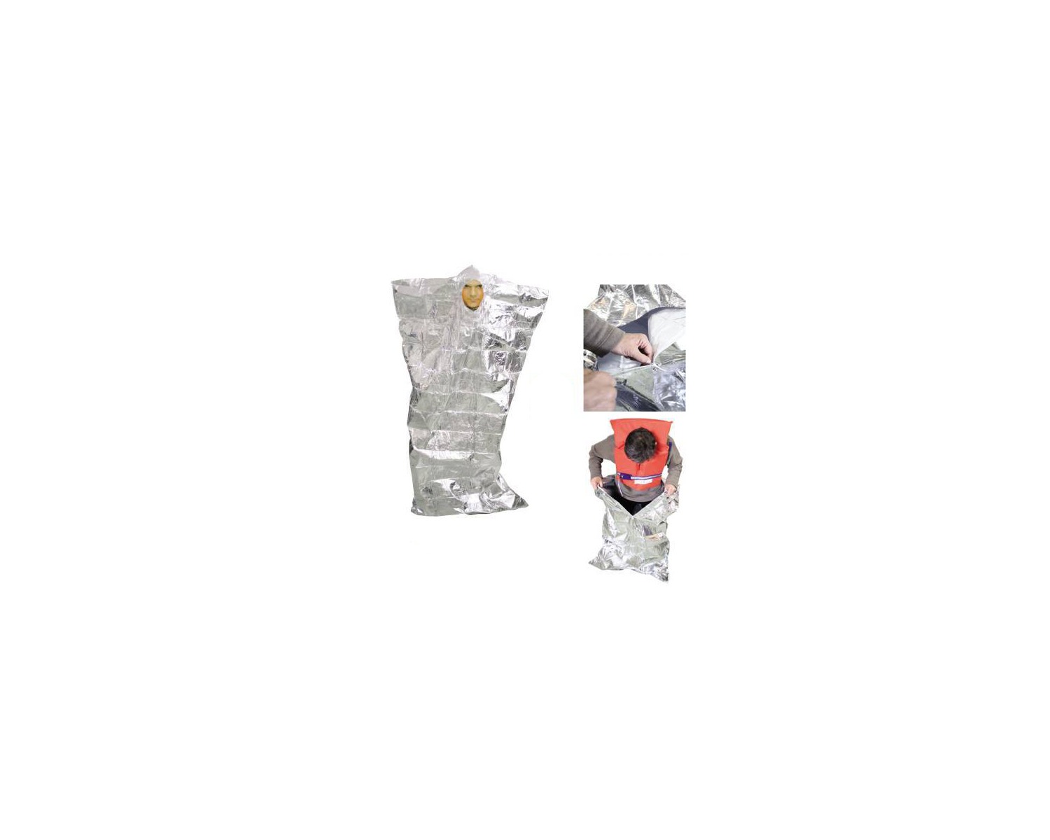 Permet de garder la personne au chaud et au sec, protege contre la pluie, le vend et le froid. Cette combinaison de survie est fabriquée avec un tissu en polyéthylène qui a une très faible conductivité thermique et réduit la perte de chaleur, ce qui maintient la température du corps dans des conditions froides et humides.