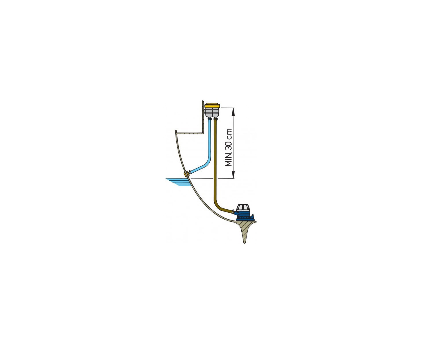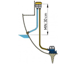 La pompe de cale à utiliser en combinaison, pourra avoir une capacité de 20 litres par minute. Les raccords reçoivent des tuyaux de Ø 19 mm