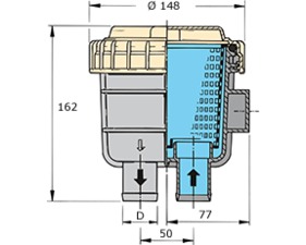 Ce séparateur VETUS collecte et retient l’huile et la graisse contenue dans l’eau de cale. L’élément fi ltrant peut être changé et il a une capacité de rétension de 320 grammes, ce qui correspond à la quantité d’huile moyenne contenue dans 8.000 litres d’eau de cale.