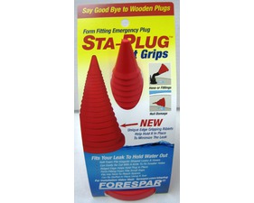 Le Sta-plug® est une pinoche en forme de cône d’une mousse à la formulation exclusive qui est solide et spongieuse, revêtue d’une couche ultrarésistante. Capable de boucher des trous ronds, ovales ou irréguliers dans les coques de bateau, Sta-Plug® doit être comprimée à la main puis inséré dans le trou pour stopper ou réduire l’entée d’eau lorsqu’elle reprend sa forme initiale, plusieurs pinoche en mousse pouvant être utilisé en même temps pour boucher de large ouverture.