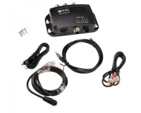 L'intégration au système de navigation du bord se fait par les ports NMEA0183 4800/38400bauds, NMEA2000, et en USB pour connexion PC.