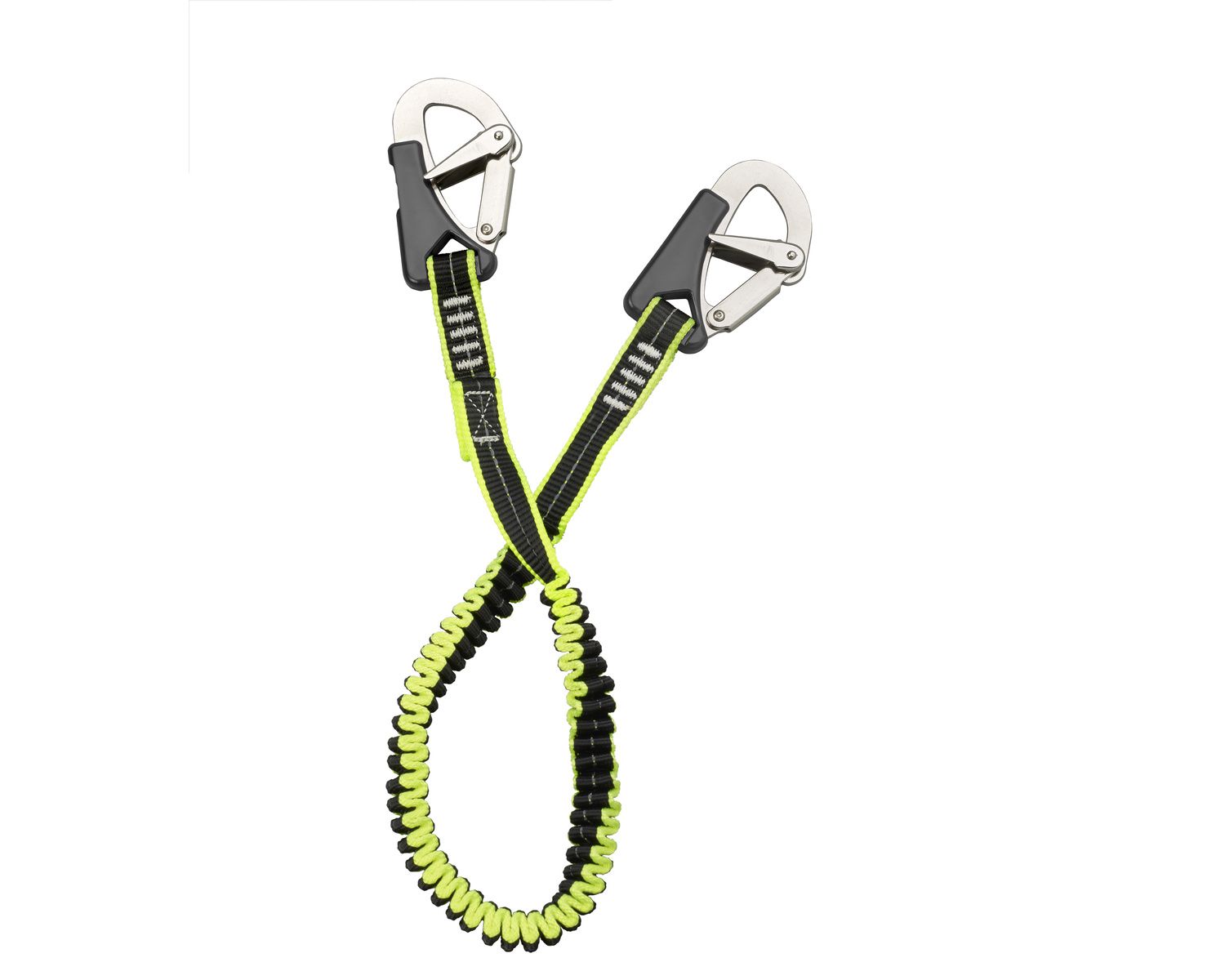 Longe élastique avec deux mousquetons inox à double sécurité et fermeture automatique