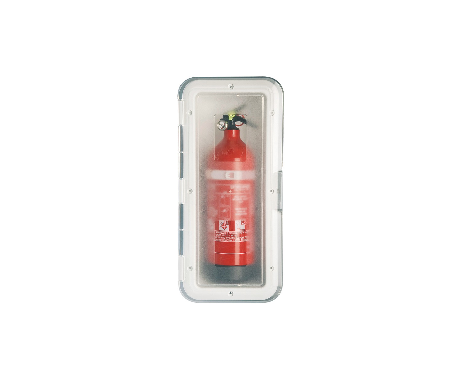 Boite encastrable pour extincteur. Permet le stockage d'un extincteur dans le cockpit ou sur une console d'open.