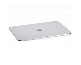 En mélaminé blanc épaisseur 15mm, bordé d'un jonc en aluminium anodisé.