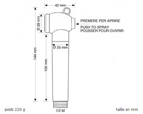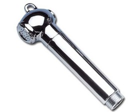 Douchette seule laiton chromée avec bouton poussoir permettant la distribution de l'eau.