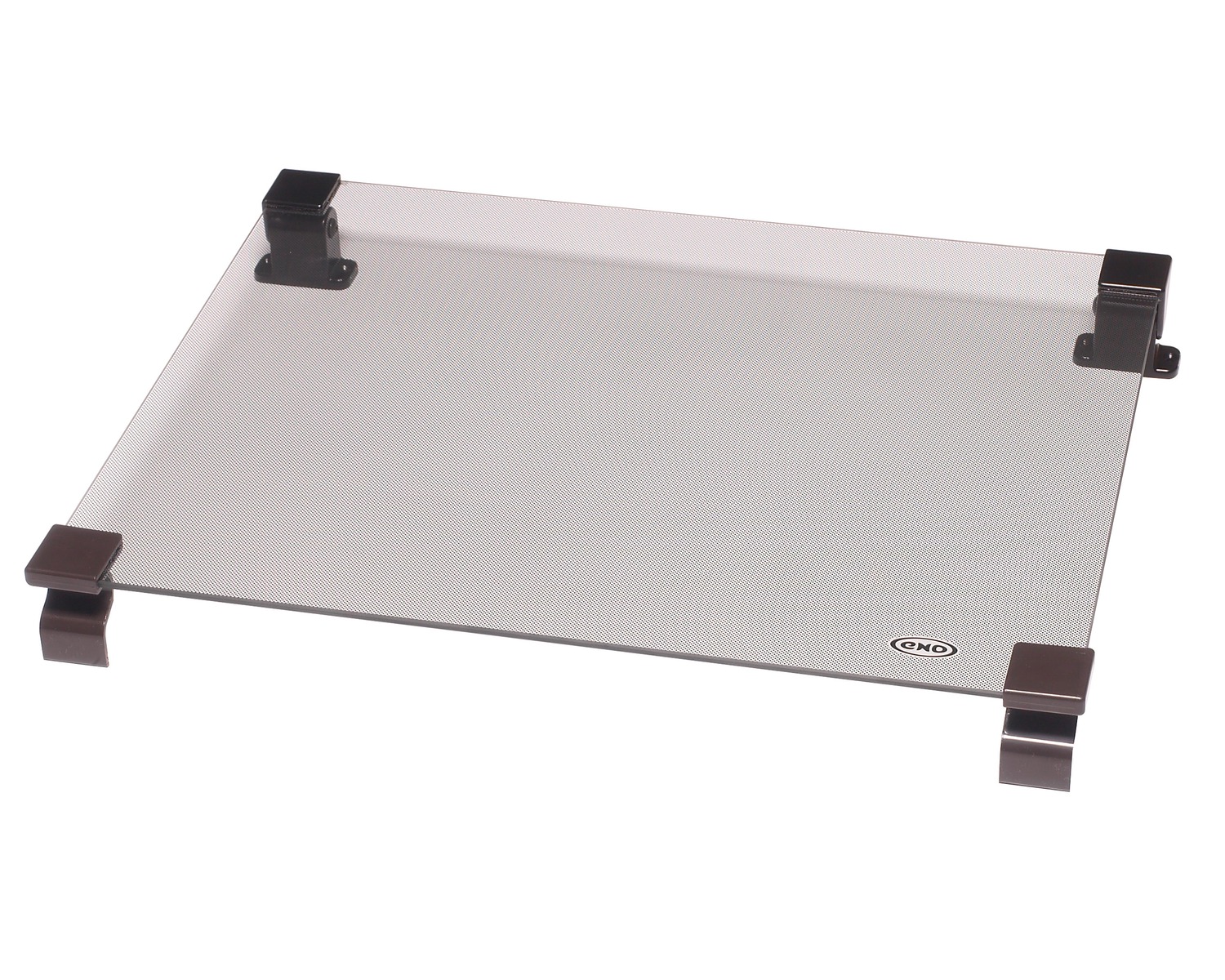 ENO Couvercle en verre trempé pour gaz 3 feux. Les couvercles en verre trempé ENO sont dotés de palier d'articulation en zamack anodisé noir. Un système de freinage évite toute chute brutale.