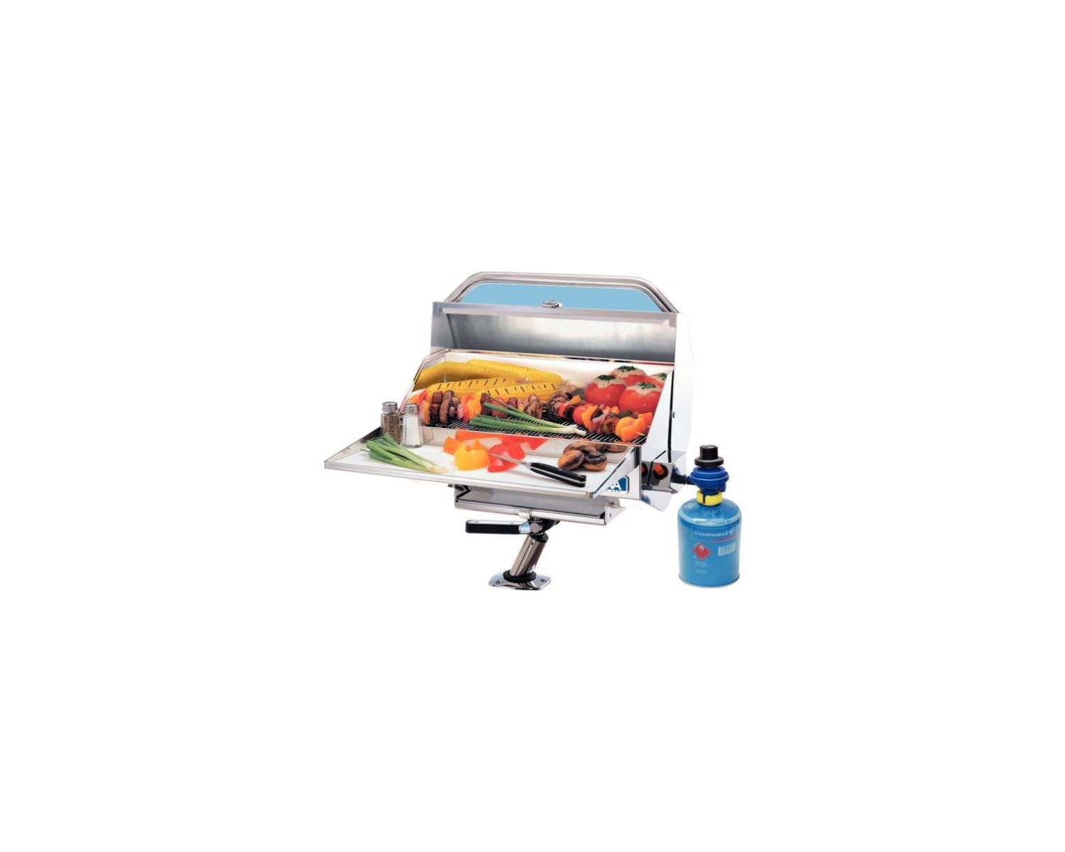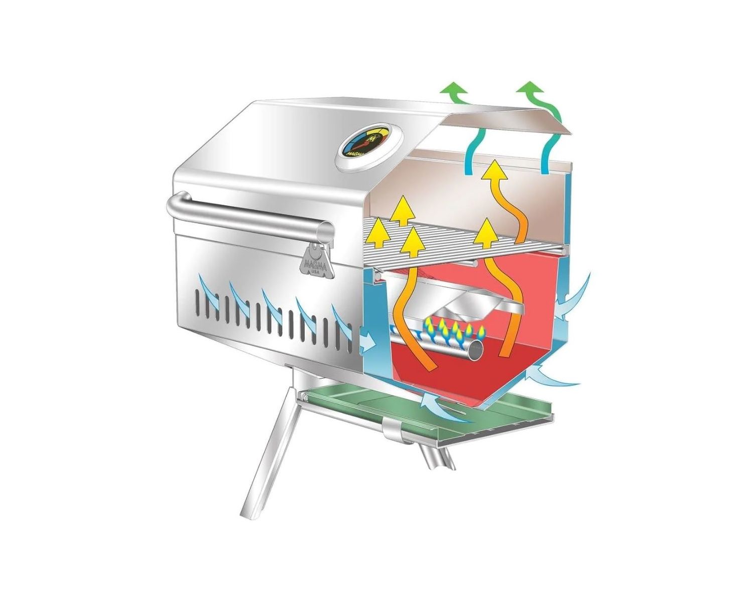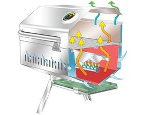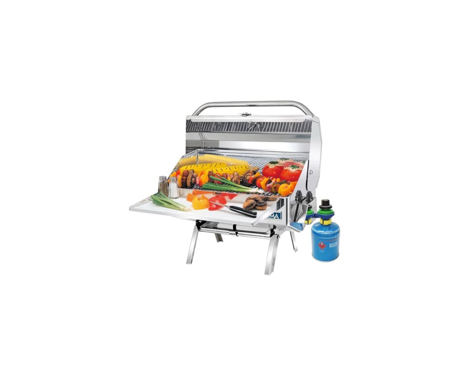 Revêtement intérieur à double enveloppe, récupérateur de graisse sur façade avant, démontage facile pour le nettoyage, couvercle articulé avec large poignée et système de fermeture.