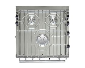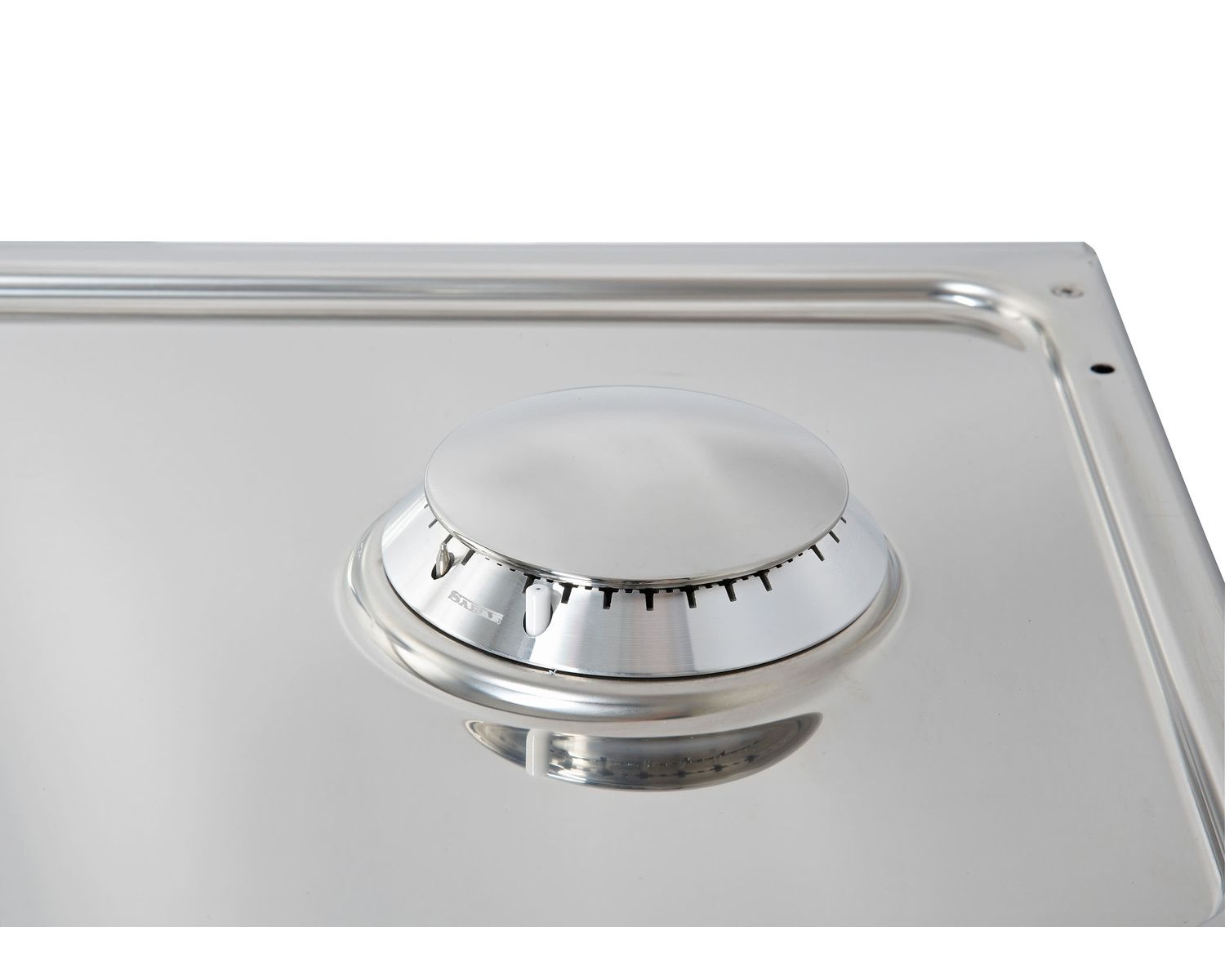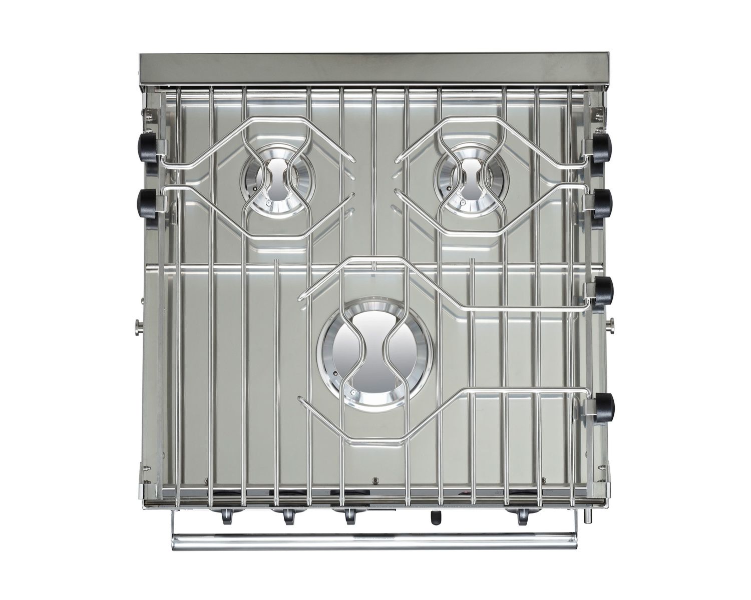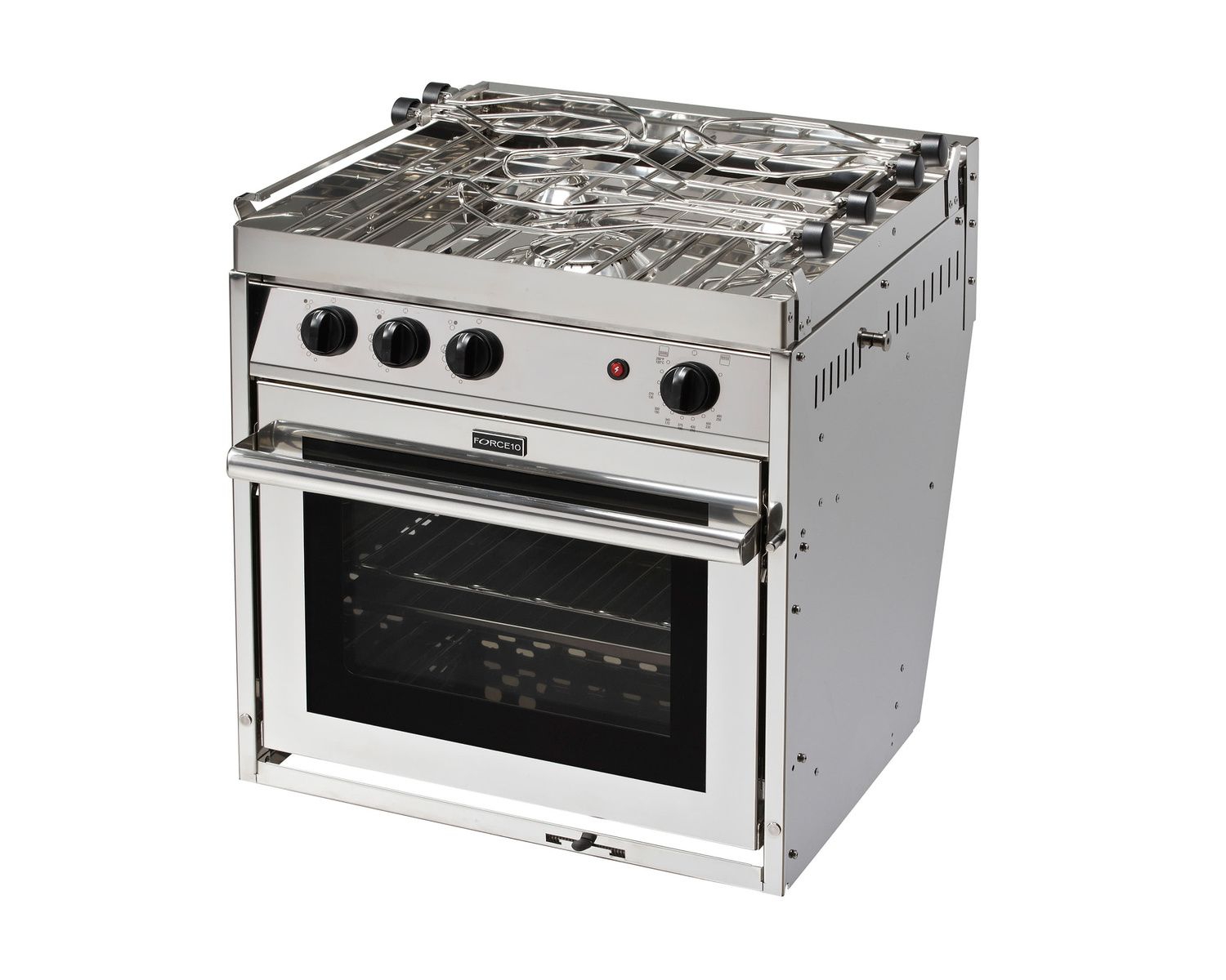 Robuste et de grande qualité ! La gazinière FORCE10 est en inox. Elle est équipée de 3 feux, d'un four contrôlé par thermostat, d'un grill, d'un système d'allumage électrique et d'une porte de four coulissante avec fenêtre.