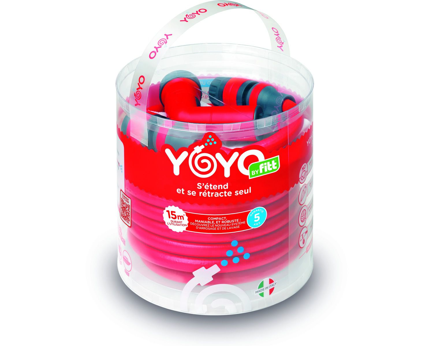 Une fois vidé de son eau, le tuyau d’arrosage extensible se rétracte et retrouve sa longueur originale.