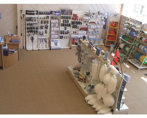 Vous y trouverez l’ensemble des produits du catalogue, un plancher de réparation voiles et sellerie et un atelier de fabrication de câbles.